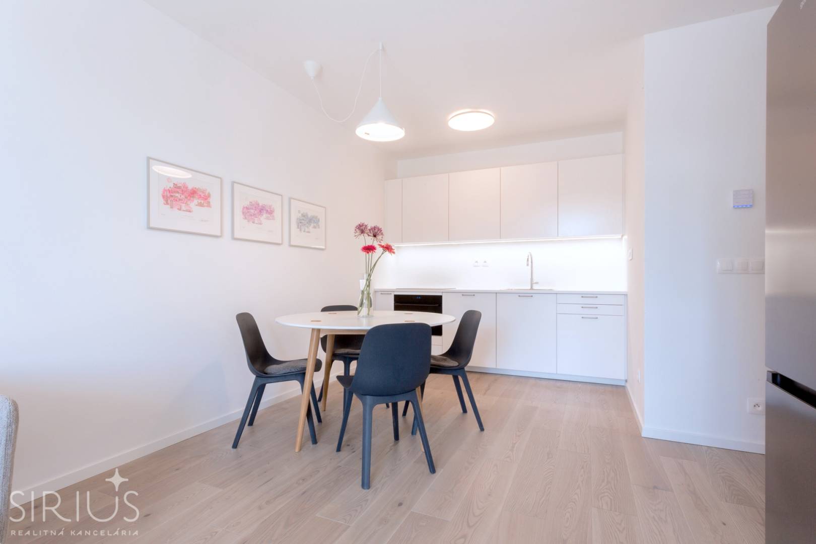 • nová kuchynská linka so vstavanými spotrebičmi (chladnička s mrazničkou, umývačka riadu, varná doska, digestor, elektrická rúra)