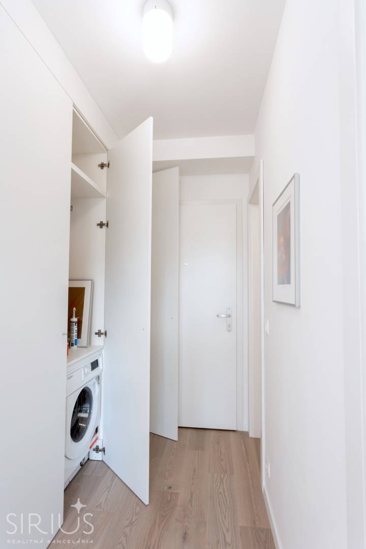 • veľká vstavaná rolldor skriňa v chodbe, v ktorej sa nachádza pračka