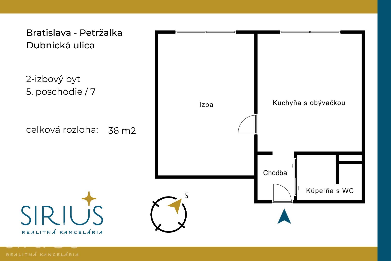 DUBNICKÁ, 2-i byt, 36 m2 – kompletne zariadený by, pokojné prostredie