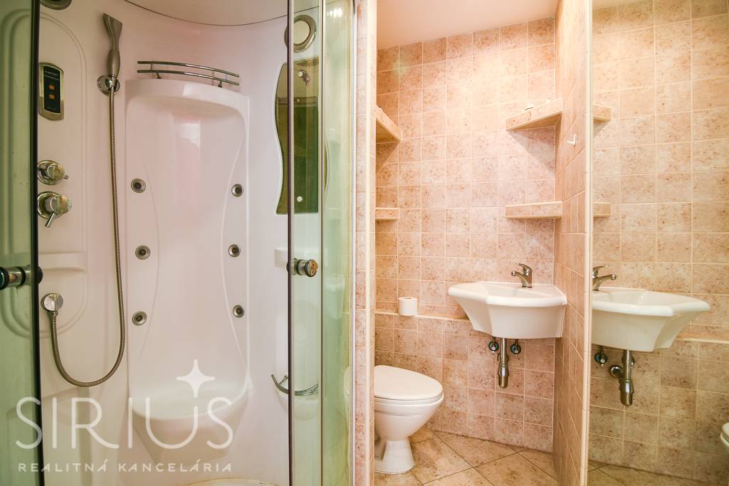 • kúpeľňa s umývadlom, hydromasážnym sprchovým kútom a WC