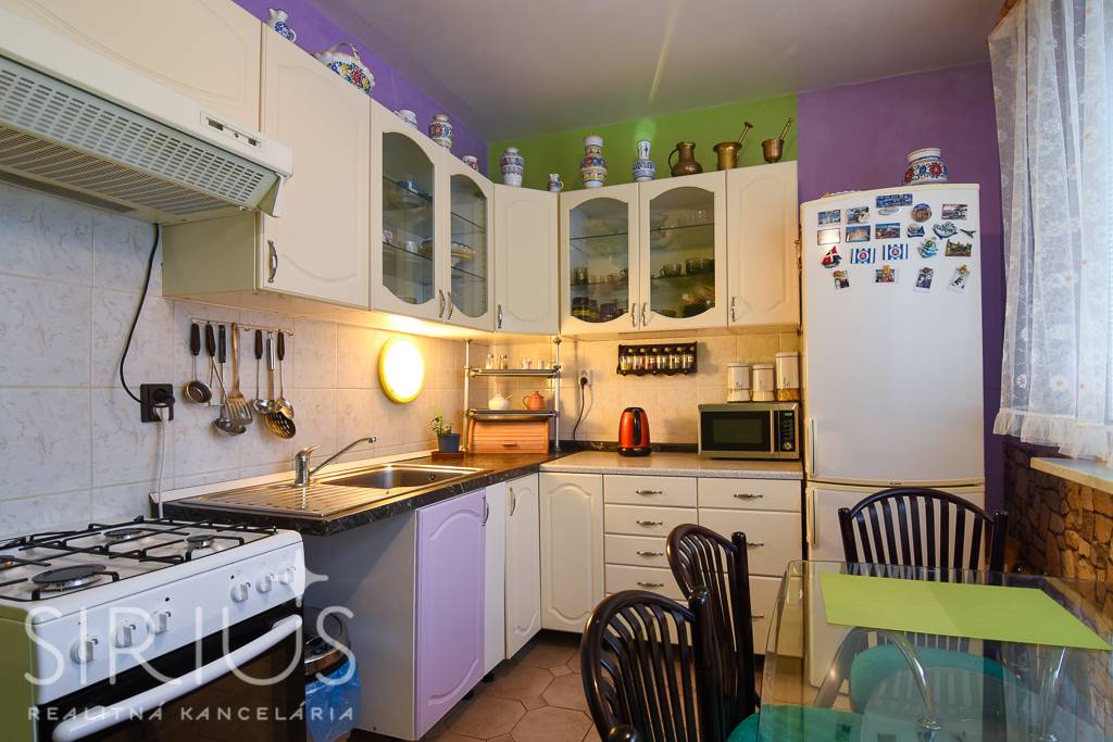 • kuchynská linka vybavená vstavanými spotrebičmi: digestor, plynový sporák, elektrická rúra, chladnička s mrazničkou, mikrovlnná rúra