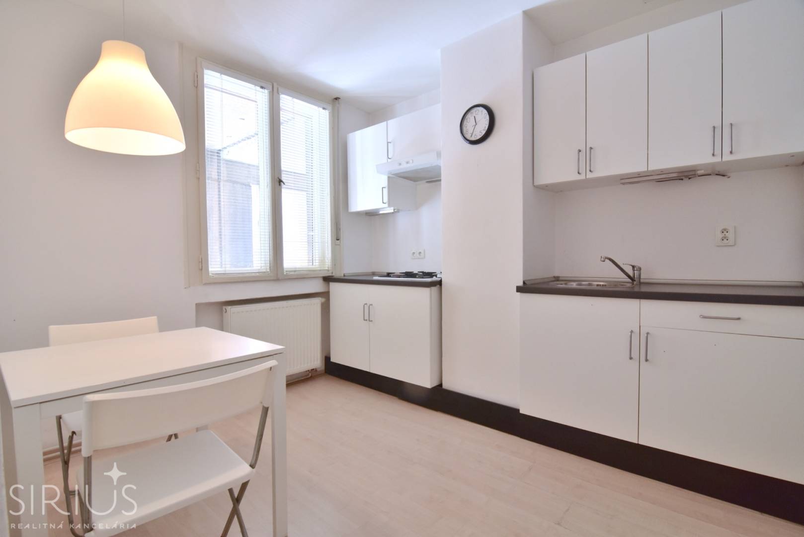 Ponuka reprezentuje praktický byt na prenájom, ktorý v sebe spája výborný pomer cena – hodnota za bývanie v úplnom centre. Príjemne presvetlený, zariadený byt v prestížnej lokalite v srdci mesta. Vďaka dostatočnej metráži, ponúka komfort samostatnej kuchyne, oddelenej toalety od kúpeľne, vytvára sa tak príjemný životný priestor, aj napriek tomu, že je to len jednoizbový byt. Praktická voľba, pre klienta, ktorý potrebuje fungovať v centre a mať všade blízko.