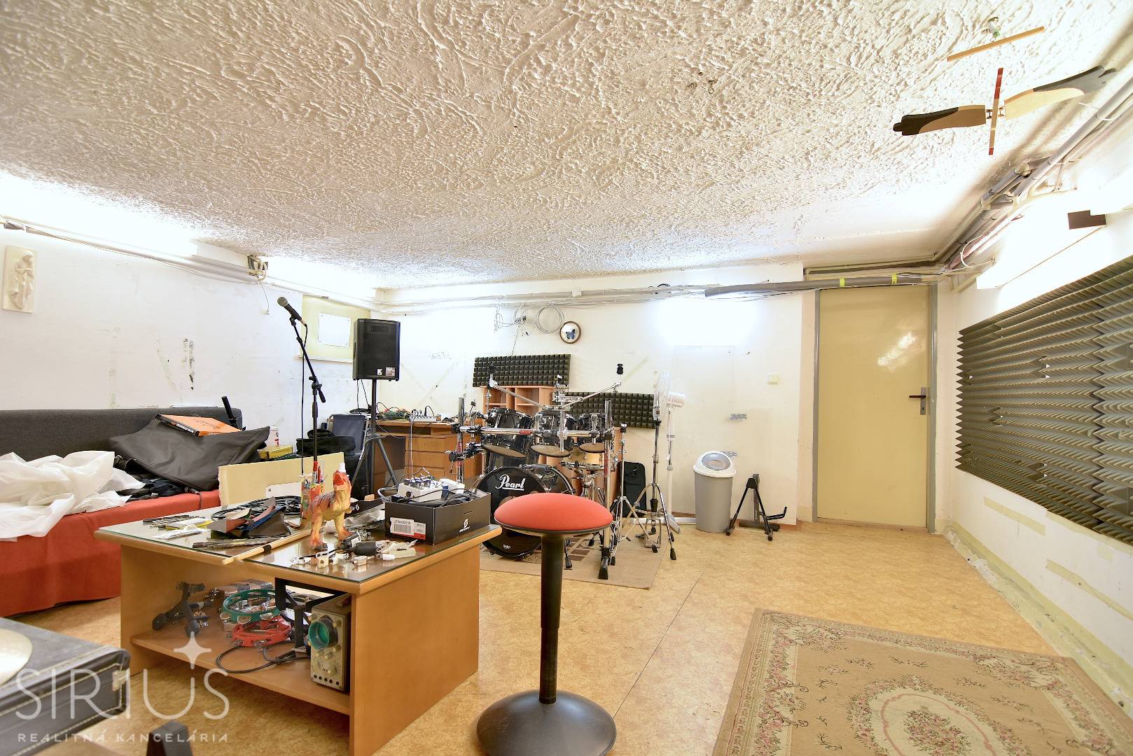 – nachádza sa tu: technická miestnosť, letná kuchynka s posedením, kúpeľňa so sprchovacím kútom a WC, kotolňa, veľká hobby miestnosť pre deti, dielňa pre domácich kutilov a predpripravená sauna