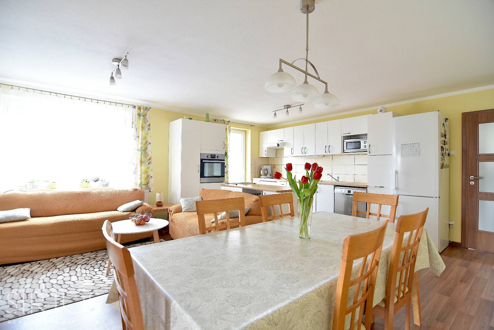 – obývačka spojená s jedálenskou časťou a kuchyňou s výstupom na terasu
