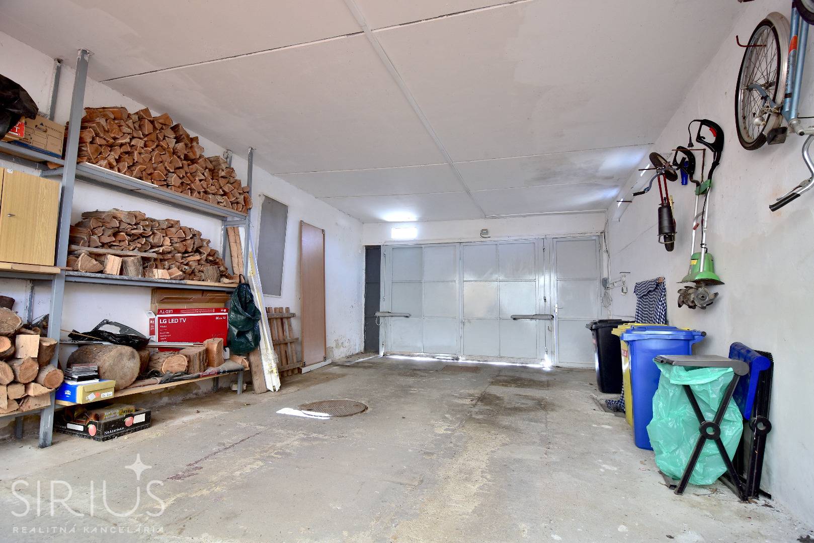 – veľká prestrešená garáž 5×16 m pre tri autá s bránou na diaľkové ovládanie