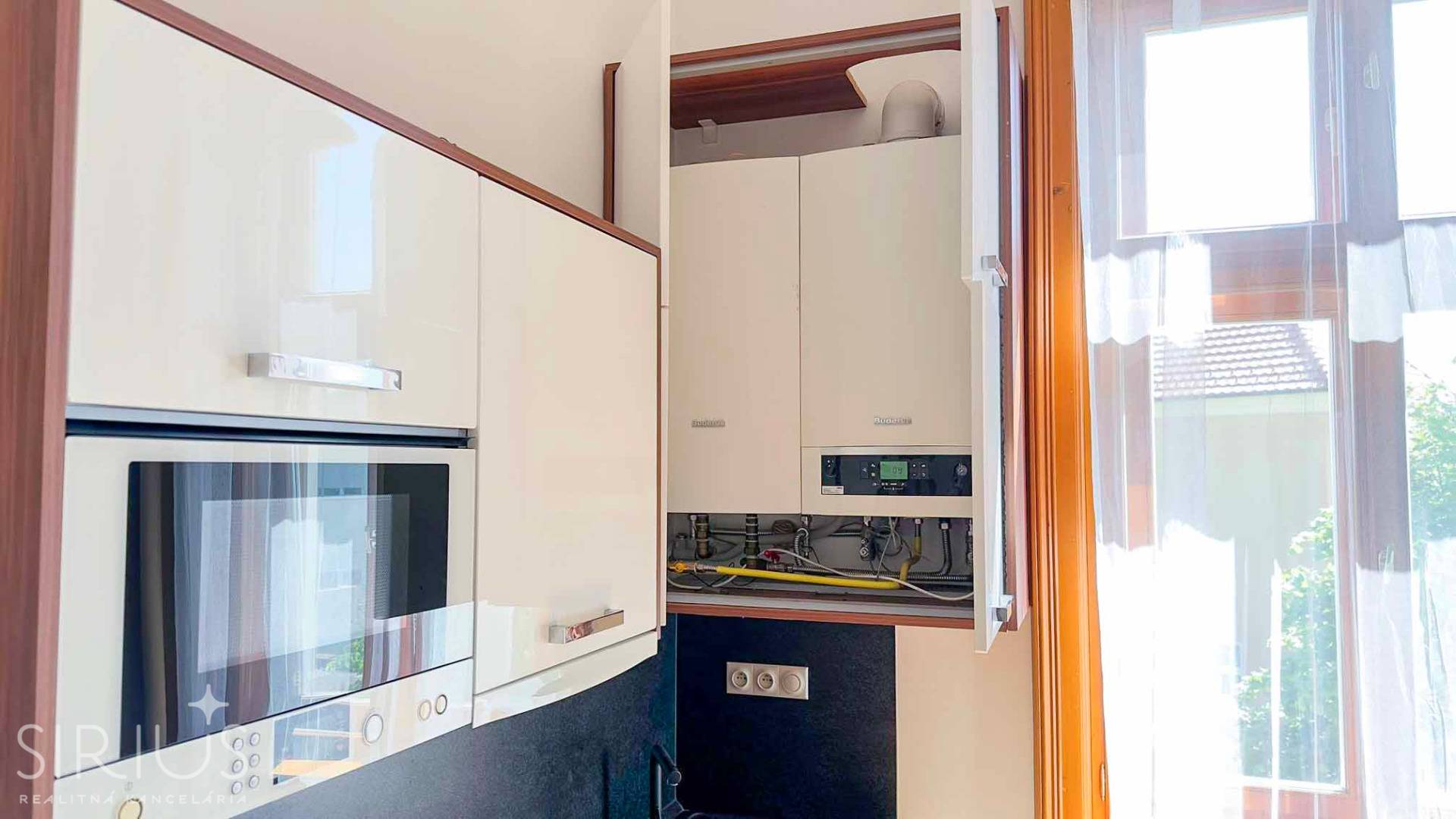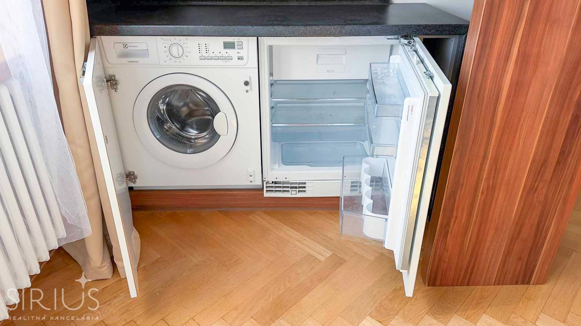 • kuchynská linka so zabudovanými spotrebičmi (indukčná varná doska, digestor, elektrická rúra, mikrovlnka, chladnička, práčka)