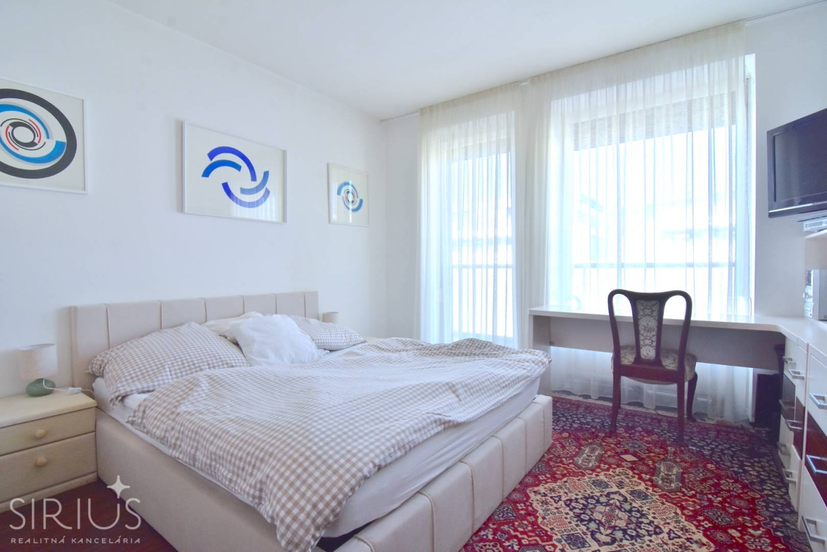 SIRIUS Realitná kancelária exkluzívne ponúka na predaj priestranný 3-izbový byt so slnečnou orientáciou, príjemnou otvorenou dennou časťou s veľkými loggiami so vstupom z každej izby. Byt s pridanou hodnotou jedinečnosti miesta, v tesnom susedstve Karpát a vinohradov, v obľúbenom bytovom projekte Račany Bianco. Nízkopodlažný bytový dom, situovaný v čarovnej scenérii račianskych viníc, ponúka bezprostrednú blízkosť zelene a pokoja, ale taktiež pohodlnú dostupnosť plnej občianskej vybavenosti mesta. Moderný, rozumne dispozične riešený veľkometrážny byt orientovaný na JV a SZ. Pre plnohodnotné pohodlie je byt vybavený klimatizáciou, podlahovým kúrením, kúpeľňou vybavenou vaňou aj sprchovým kútom.