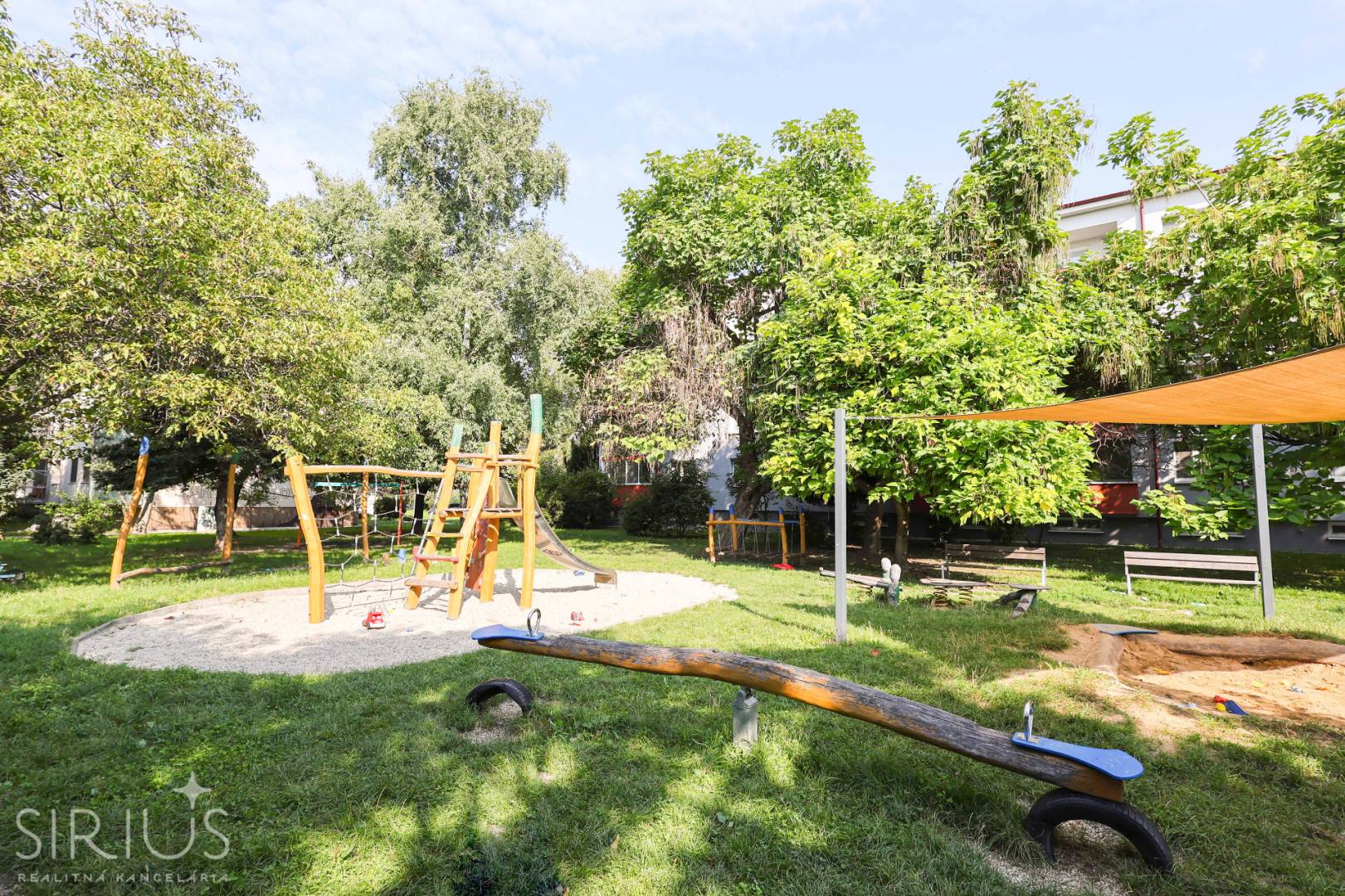 Byt je orientovaný na dve svetové strany, má skvelú dispozíciu, veľkú terasu (takmer 9 m2) a ešte väčšiu pivnicu (skoro 30 m2). Byt sa nachádza v už zrekonštruovanom a malopodlažnom bytovom dome s výhľadmi z oboch strán na zeleň a len pár metrov po chodníku od materskej a základnej školy a ihrísk, či športovísk.
