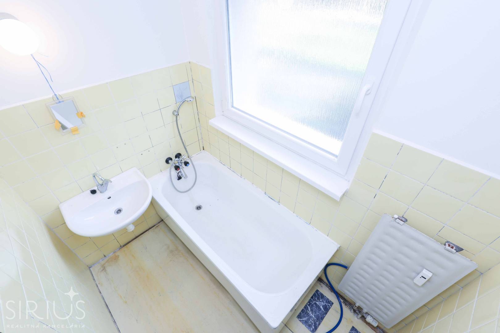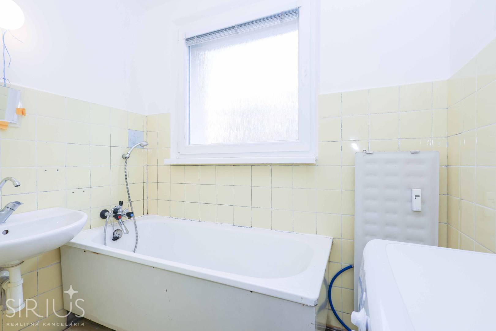 • výnimočná kúpeľňa s vaňou, umývadlom, miestom pre práčku a veľkým oknom, vďaka ktorému je v nej denné svetlo a možnosť prirodzeného vetrania