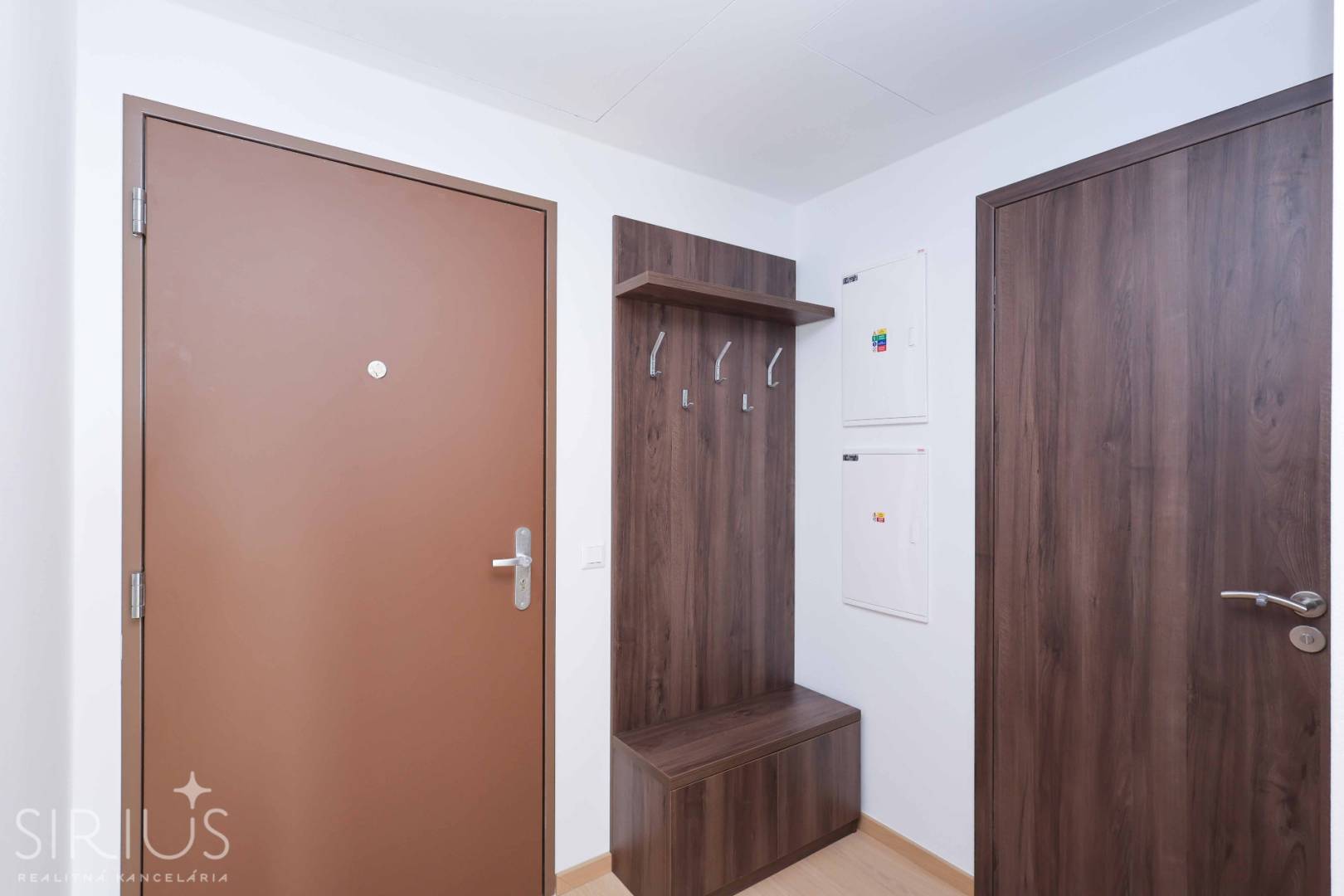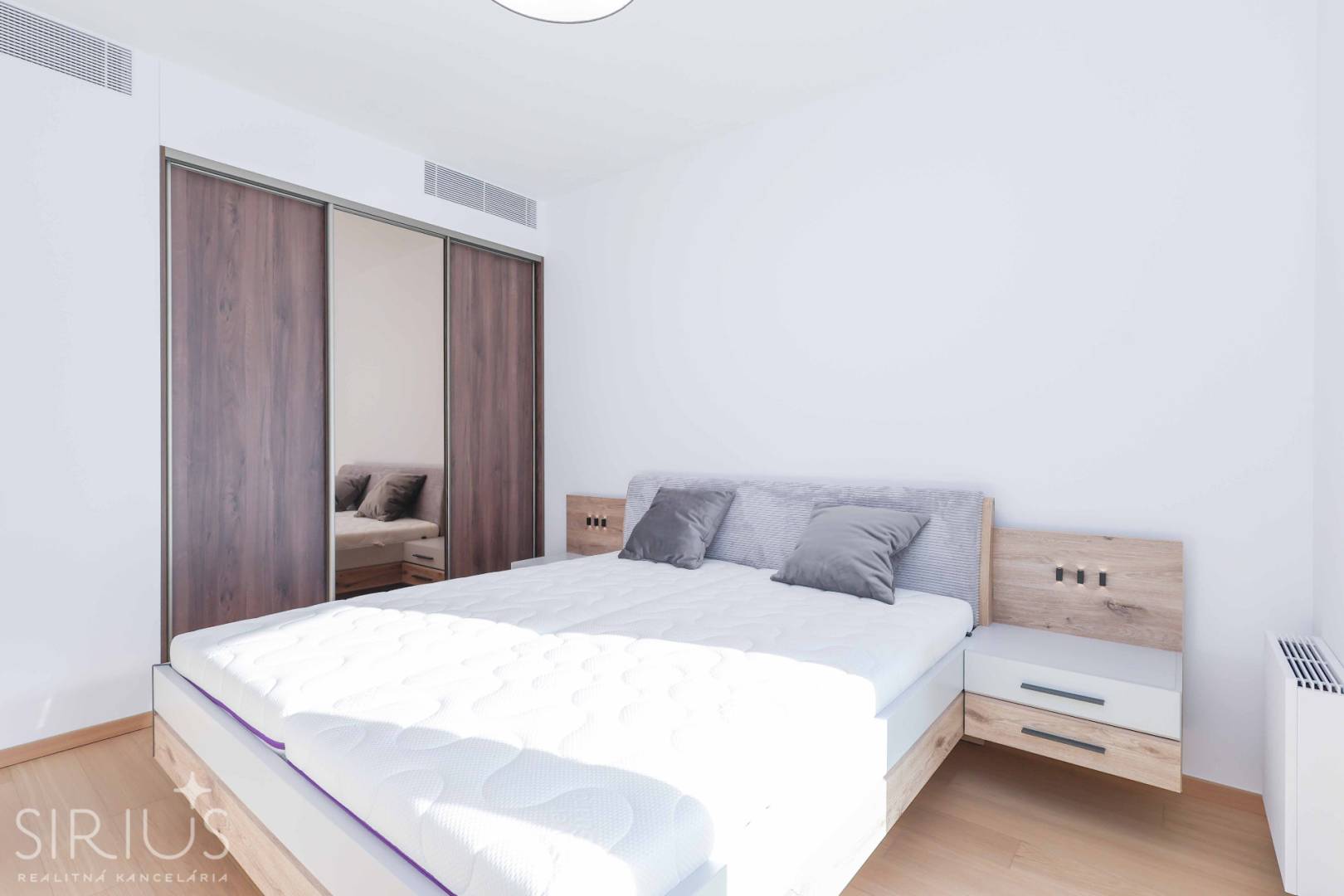 A ako bonus – byt je kompletne zariadený na mieru vyrobenou kuchynskou linkou so špičkovými spotrebičmi, šatníkovými skriňami, sedačkou, jedálenským stolom, stoličkami, posteľou, a všetkým, čo k bývaniu patrí. Stačí tak prísť s kuframi a môžete ihneď bývať.