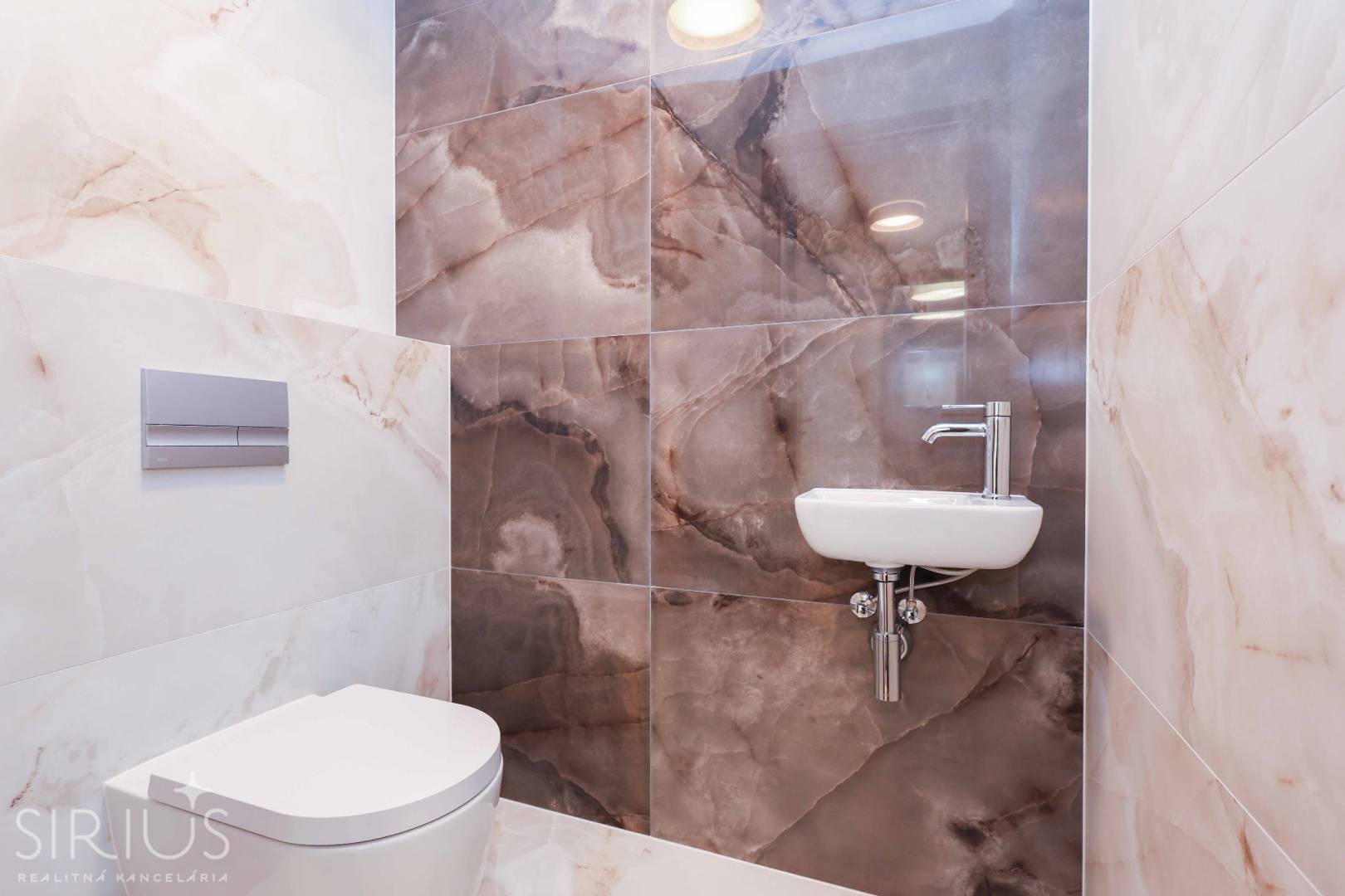 • veľkoformátová (120×60) dlažba a obklad v kúpeľni a na WC