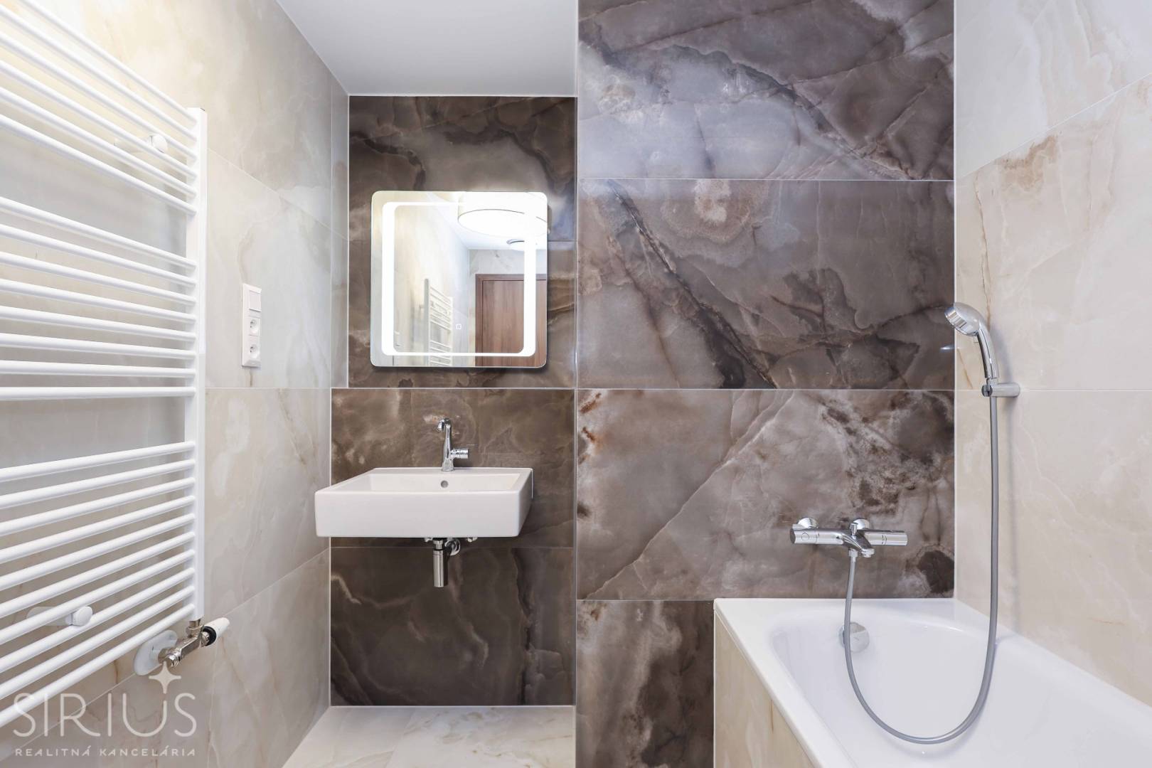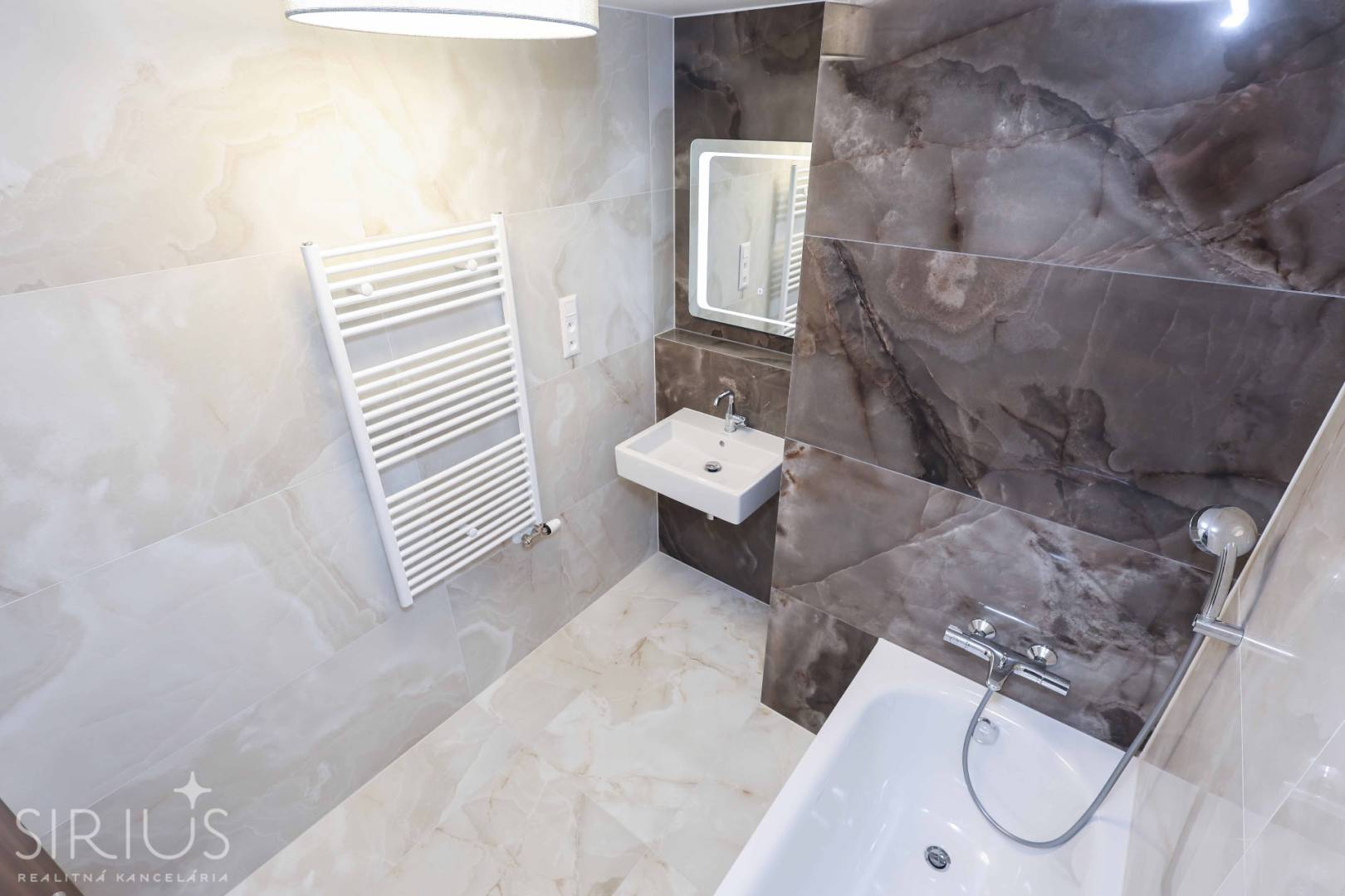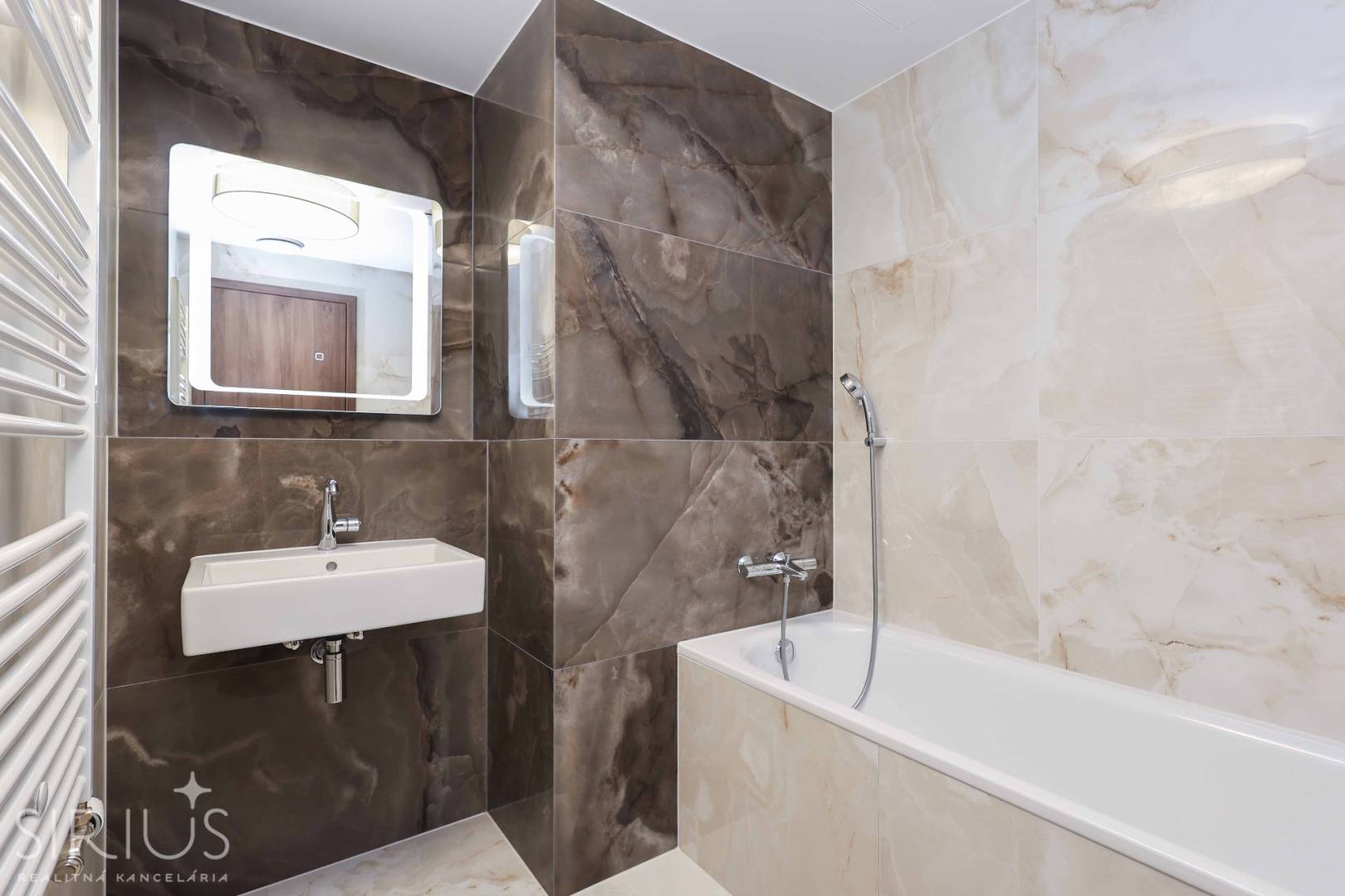 • kúpeľňa s vaňou, umývadlom a rebríkovým radiátorom