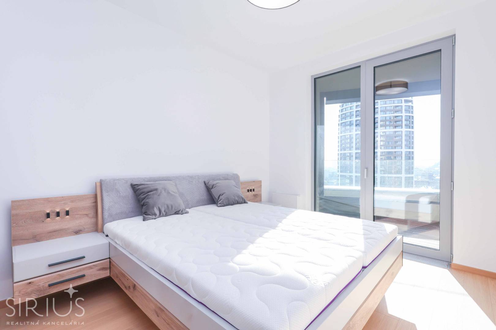 SIRIUS Realitná kancelária exkluzívne ponúka na predaj 2-izbový byt vo vyhľadávanej nadštandardnej novostavbe SKYPARK, ktorá ponúka úplne nový rozmer bývania v širšom centre hlavného mesta. Unikátna architektúra na svetovej úrovni, moderné a efektívne riešenie interiéru v symbióze s kompletne vybudovaným komerčným priestorom je to, čo naplní očakávania aj tých najnáročnejších klientov. Navyše, tento byt ako jeden z mála 2-izbových bytov na trhu je orientovaný na západ s výhľadom na Staré Mesto a hrad so zaručeným pokojom aj do budúcna. Nestojí tak pred žiadnou rušnou križovatkou, či budúcou plánovanou zástavbou. Pod oknami je krásny zelený park.