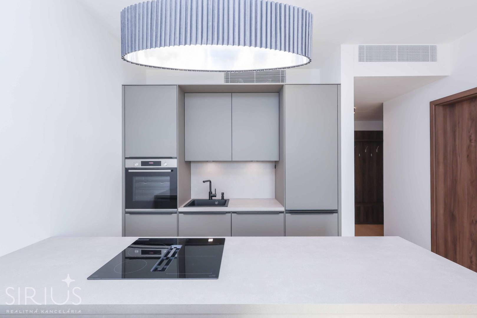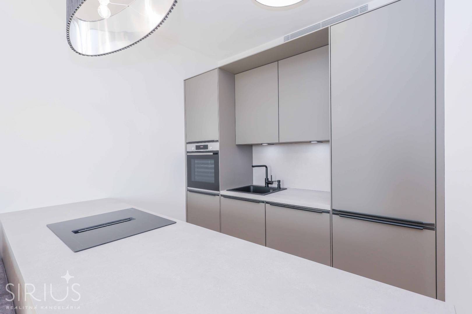 • kompletne zariadená kuchynská linka so vstavanými elektrospotrebičmi – indukčná varná doska so zabudovaným odsávaním, elektrická rúra, umývačka riadu, chladnička s mrazničkou – všetko spotrebiče značky BOSCH