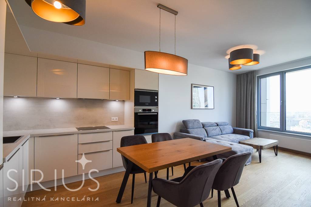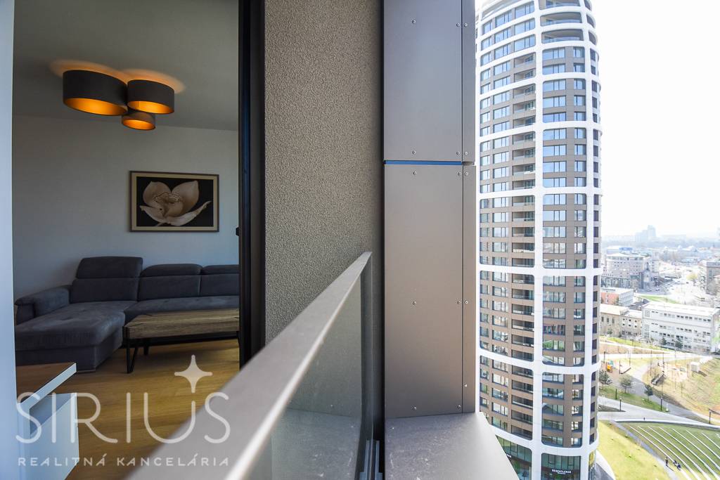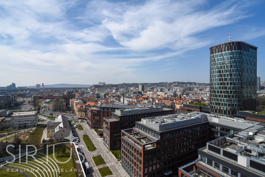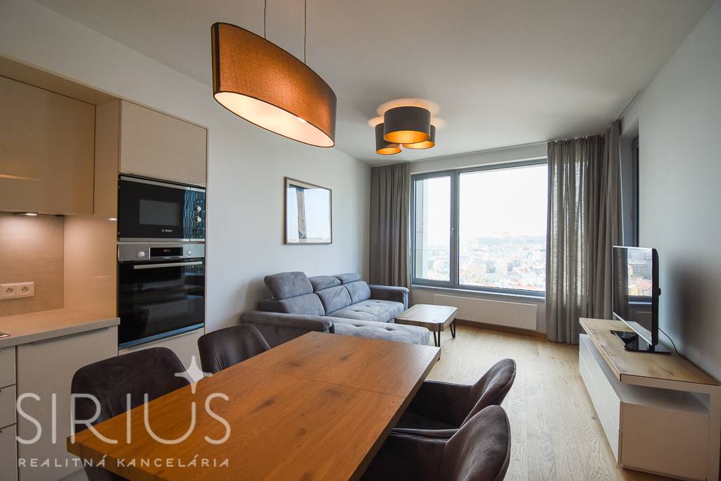 SIRIUS Realitná kancelária exkluzívne ponúka na prenájom 2-izbový byt vo vyhľadávanej luxusnej novostavbe SKY PARK, ktorá ponúka úplne nový rozmer bývania v širšom centre hlavného mesta. Unikátna architektúra na svetovej úrovni, moderné a efektívne riešenie interiéru v symbióze s kompletne vybudovaným komerčným priestorom je to, čo naplní očakávania aj tých najnáročnejších klientov. Navyše, tento byt má ten najlepší možný výhľad a je k dispozícii ihneď.