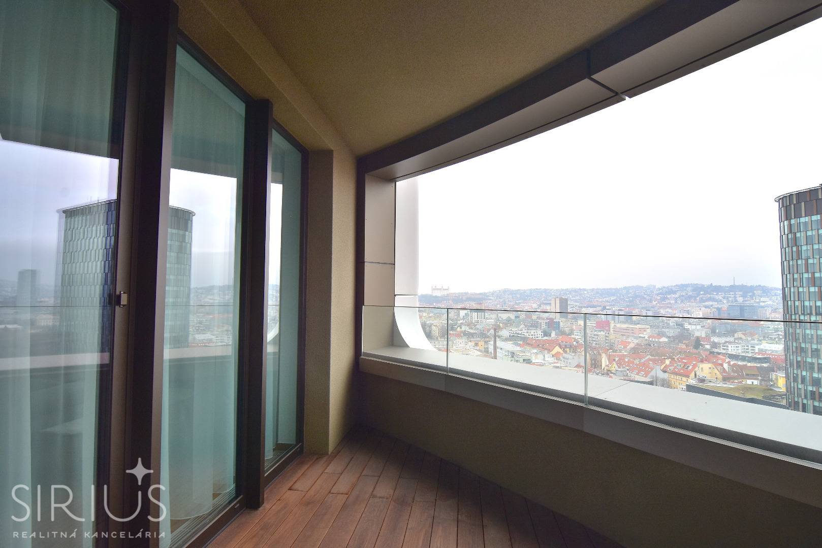 SIRIUS Realitná kancelária exkluzívne ponúka na prenájom 3-izbový byt vo vyhľadávanej nadštandardnej novostavbe SKYPARK, ktorá ponúka úplne nový rozmer bývania v širšom centre hlavného mesta. Unikátna architektúra na svetovej úrovni, moderné a efektívne riešenie interiéru v symbióze s kompletne vybudovaným komerčným priestorom je to, čo naplní očakávania aj tých najnáročnejších klientov. Navyše, tento byt má ten najlepší možný výhľad a zaručený pokoj aj do budúcna, keďže sa nachádza v III. veži. Nestojí tak pred žiadnou rušnou križovatkou, či budúcou plánovanou zástavbou. Byt sa prenajíma zariadený a je k dispozícii ihneď.