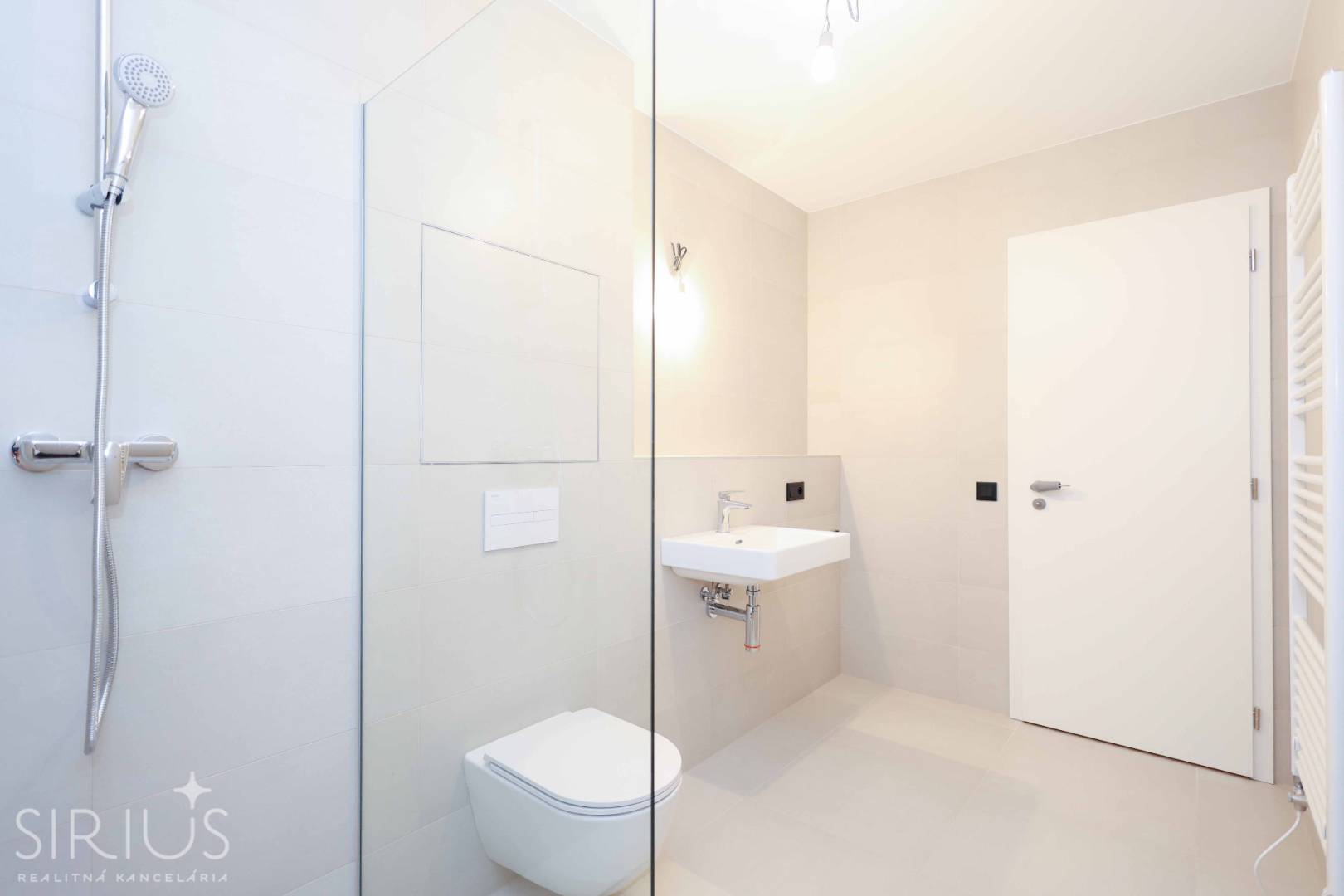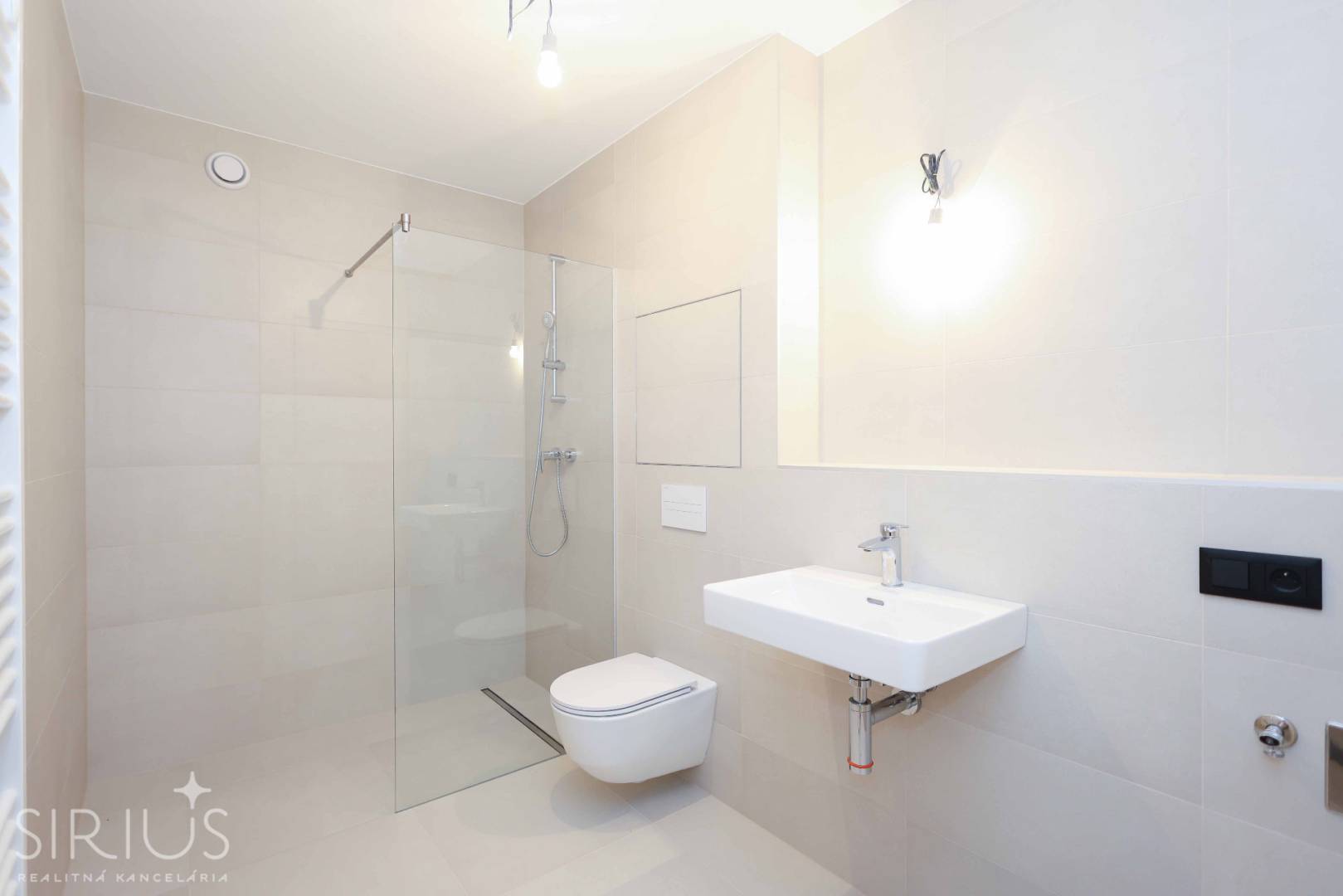 • priestranná kúpeľňa s walk-in sprchovým kútom, umývadlom, rebríkovým radiátorom, miestom pre práčku a WC
