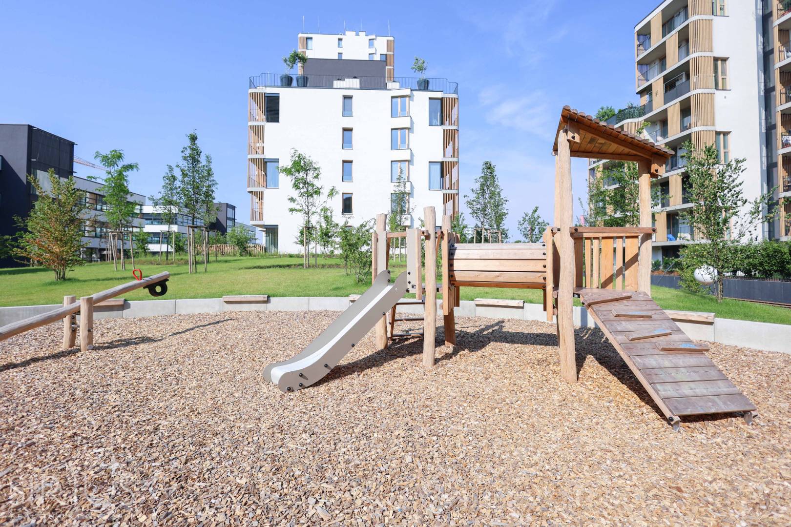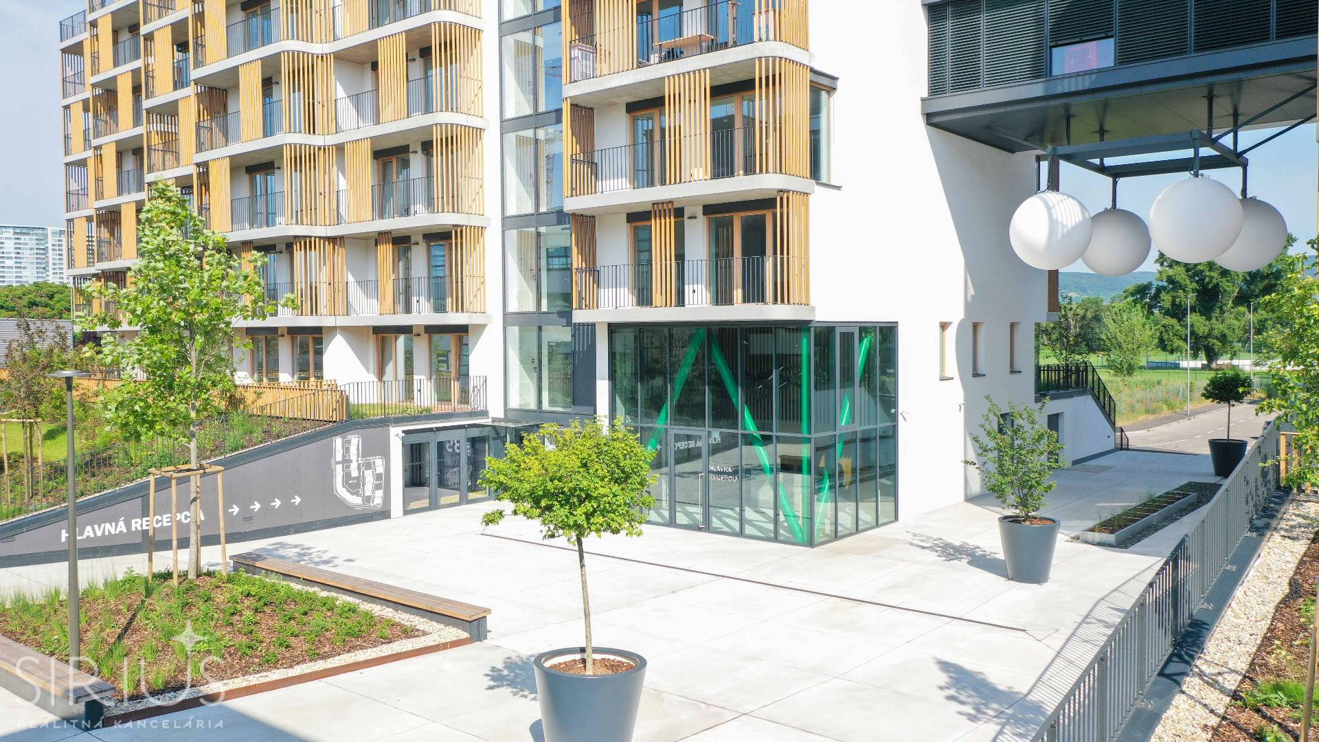 Byt sa nachádza v nízkopodlažnom bytovom dome v uzavretom privátnom areáli s parkom, detskými ihriskami, oddychovou zónou, kaviarňou, bistrom a lavičkami.