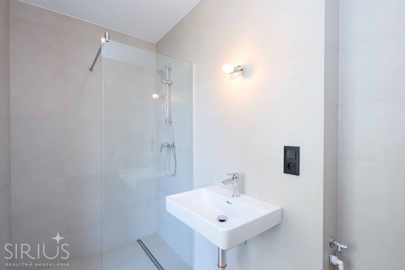 • priestranná kúpeľňa s walk-in sprchovým kútom, umývadlom, rebríkovým radiátorom,miestom pre práčku