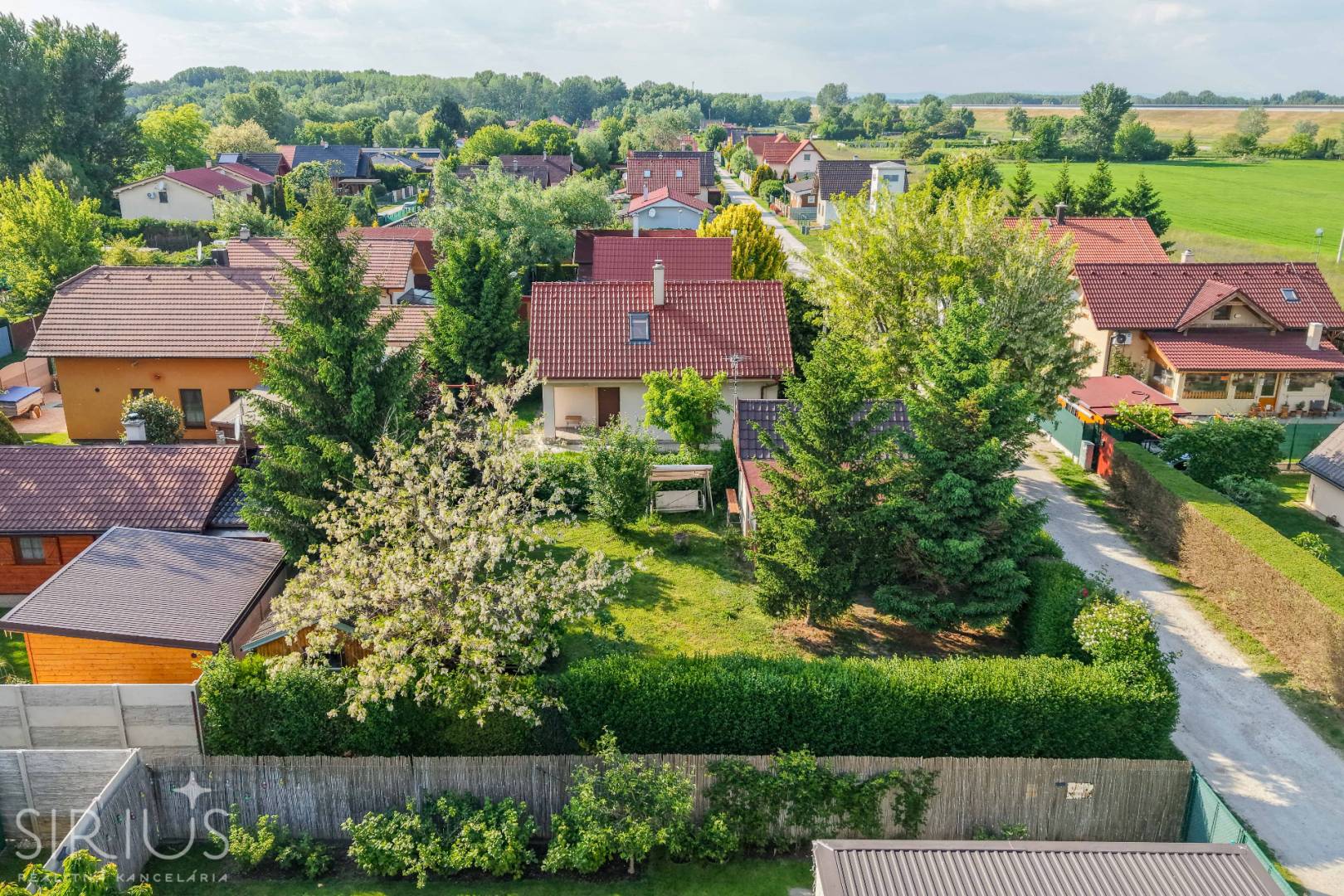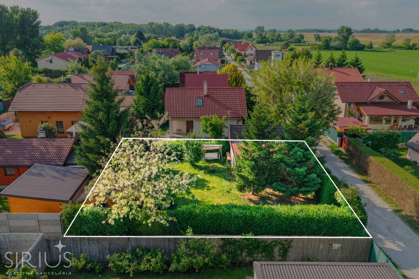 • oplotený živým plotom