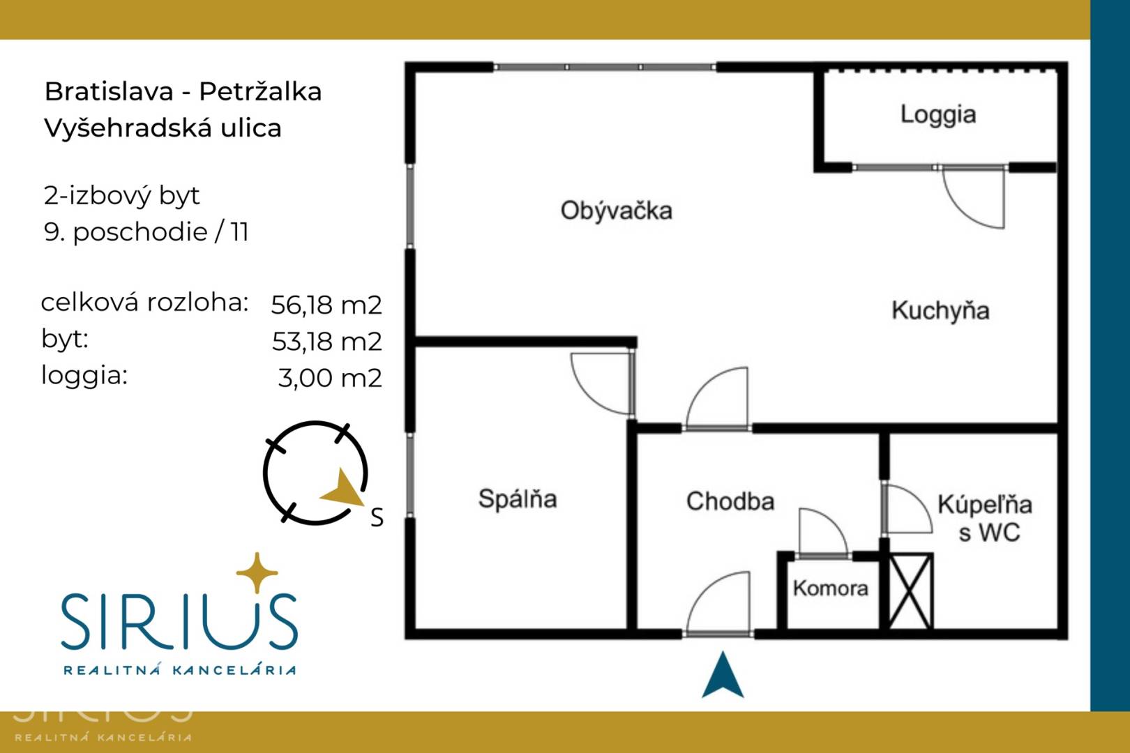 • celková plocha: 56,18 m2 (byt 53,18 m2 + loggia 3 m2)